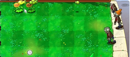 2、先在上路左侧种植两个豌豆向日葵。