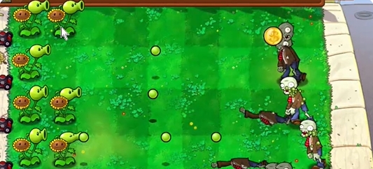 3、在左侧补齐一列豌豆向日葵,提升输出伤害。