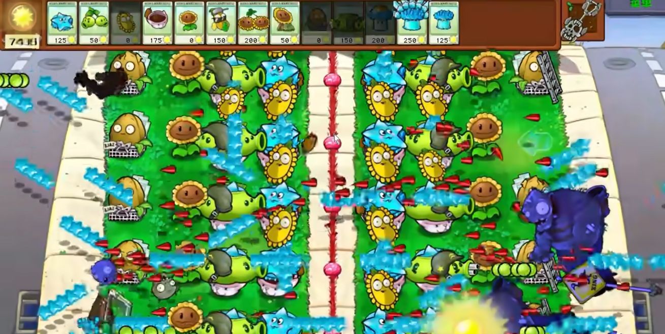 打到后期阳光足够了以后,就可以把向日葵全部都铲掉。最后只要保证地图两边各有三列海杨桃的话,那么这一关就基本能赢了。期间碰到巨人僵尸的时候,直接用灰烬类植物消灭即可。