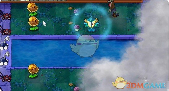 3、在泳池中种植一个豌豆射手。