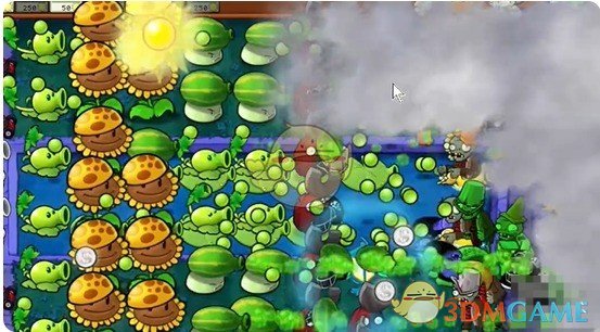 7、最后在草坪上种植多个西瓜喷菇即可轻松过关。