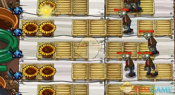 2、进入关卡后首先将前两列放满阳光花盆。
