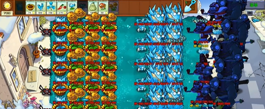 当高冰果因血量耗尽或其他原因消失时,会触发类似 “寒冰菇” 的大范围控场效果。该效果能瞬间冻结全场僵尸,持续时间长达 8 秒,冻结结束后还会附加 15 秒的减速效果。这一特性不仅能在高冰果离场时挽救危急防线,还能为后续植物部署或输出创造窗口期,有效打断僵尸的进攻节奏。