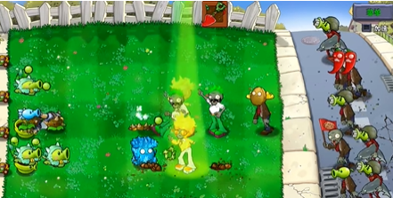 ②点燃僵尸的豌豆变为火球,火球对一般植物和南瓜头类植物共同造成40伤害(攻击不到悬浮植物和底座植物)