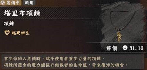 需要注意的是,复活效果存在冷却时间(CD),触发后需等待一定时长才能再次生效,因此不可过度依赖。建议玩家将其与常规治疗道具、防御技能搭配使用,在关键时刻作为“底牌”应对突发状况。对于喜欢单人探索或挑战高难度内容的玩家来说,塔里布项链是性价比极高的生存向饰品,获取难度不高却能显著提升冒险体验,值得优先收集。