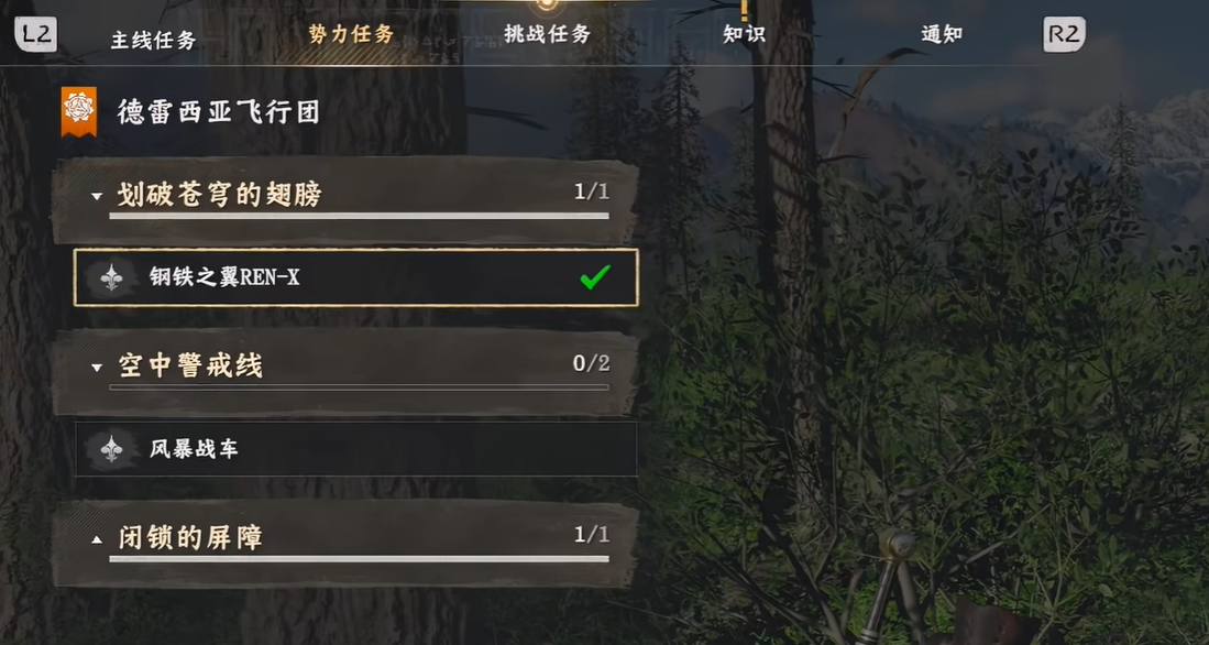 首先打开冒险日志,进入势力任务界面,在德雷西亚地区下的德雷西亚飞行团中找到任务划破苍穹的翅膀并接受。