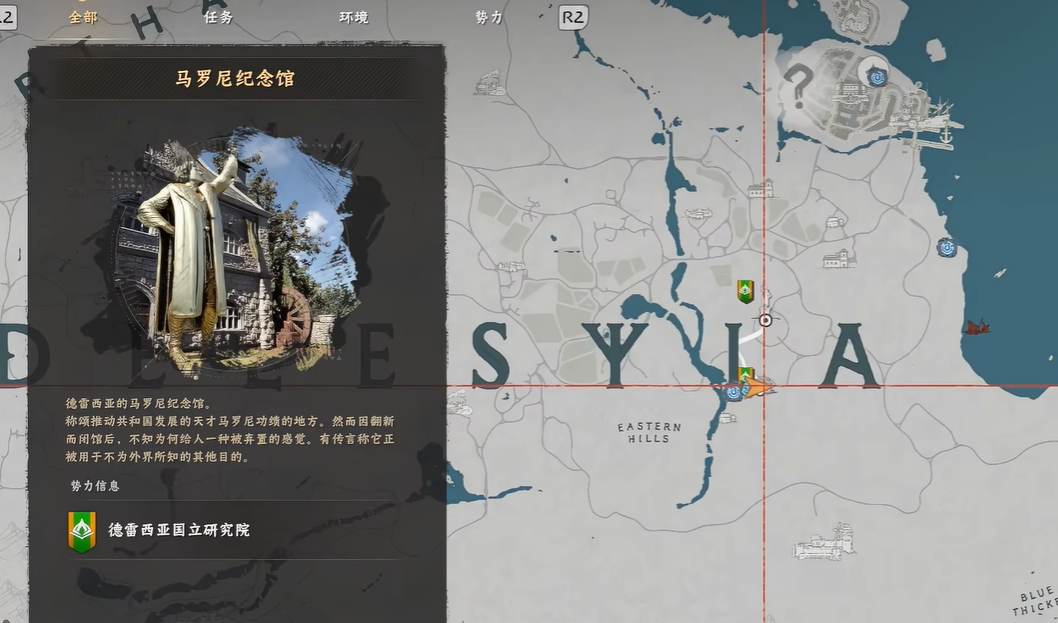 随后前往马罗尼纪念馆,这里有一个传送装置,也是主线剧情的必经之地,玩家需要在此处进行交互。