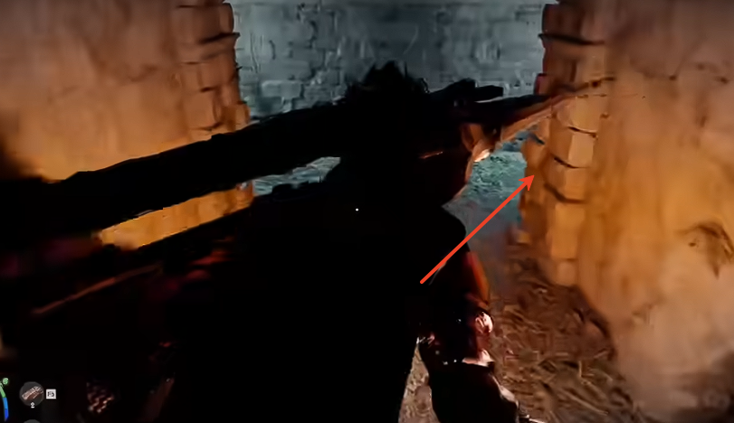 蹲下身形钻过洞口,洞内左边是陷阱区域,请走右边通道。