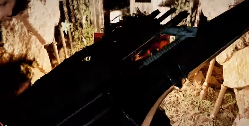 进入建筑内部后登上楼梯,在地板塌陷区域保持靠左行走。