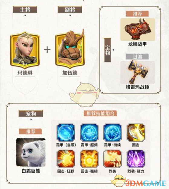 宝物推荐搭配:首选龙鳞战甲;过渡可以选格雷玛战锤。