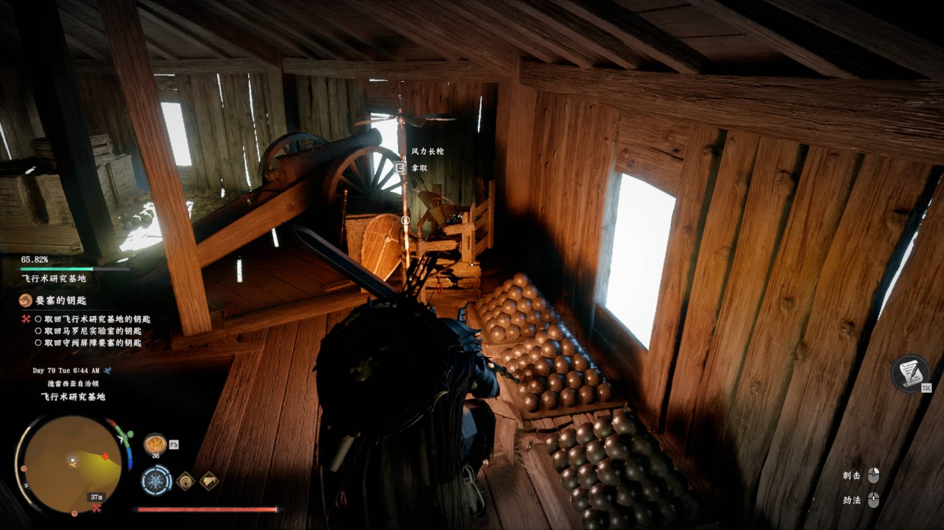 想要拿到风力长枪,玩家需要进入这座右侧木屋并沿着楼梯爬到顶层房间。在顶层的武器架上,可以直接拾取这把武器。该获取方式属于主线流程固定获取,不需要玩家完成额外的解谜任务或前置条件。在同个房间内,玩家还可以发现炮弹等其他物资,建议一并收集以备后续战斗使用。