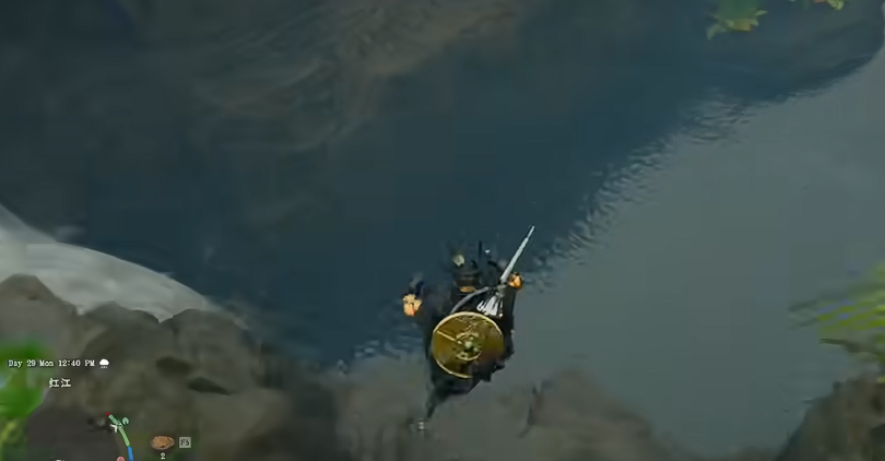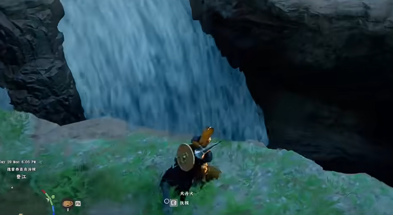 学会刺击,操作为 R1+△或 Shift+ 右键,用来穿过瀑布、水流。