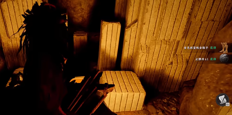 在尽头的位置,提灯瞄准,然后直接劲法就行。进入之后打开宝箱,获得金色欲望板金盔甲。