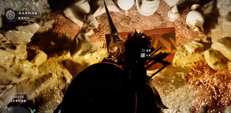 进入洞内直行,即可找到宝箱获得。