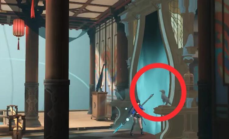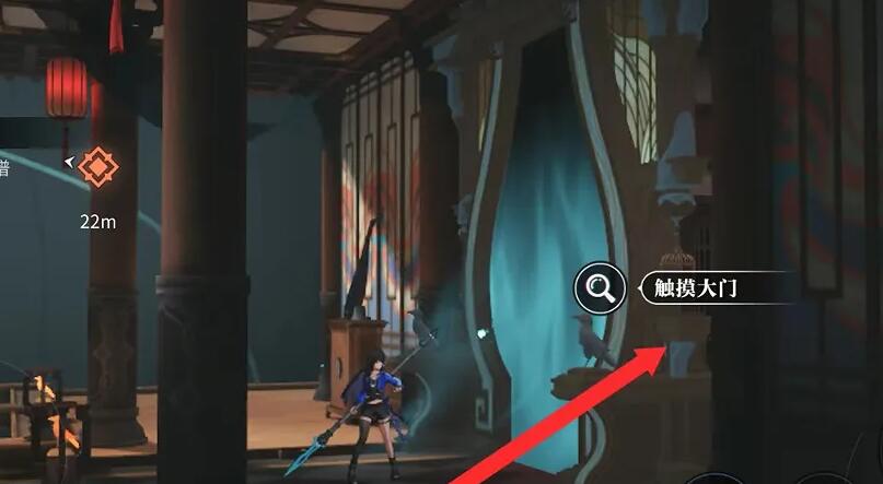 2、到达目的地后往右侧走,接着在此处使用弥留的羽毛打开大门