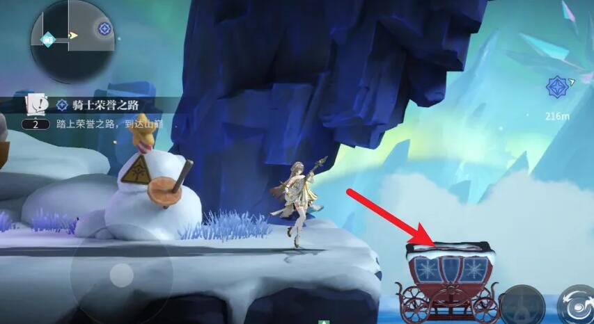 2、跟随任务指引来到指定地点,到达后跳上滑雪车躲避障碍物