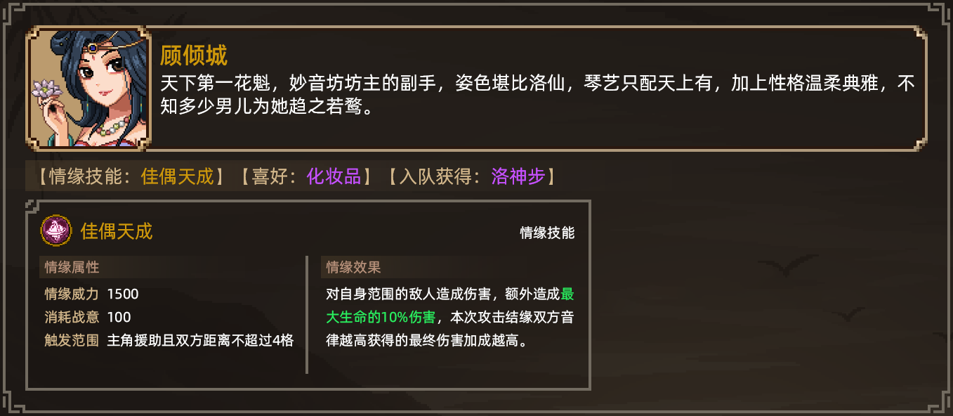 以上就是小编整理带来的《大侠立志传》顾倾城结缘攻略,更多精彩内容,请点击关注手游网!