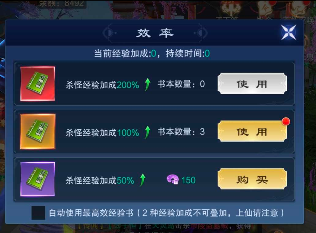 7、如果不是急需突破当前等级,建议莲台问道的经验本最后在刷,每日3次。是目前经验最多的地方,等级越高经验获得越高