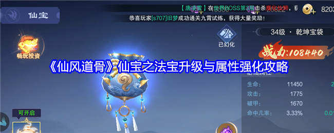 《仙风道骨》仙宝之法宝升级与属性强化攻略