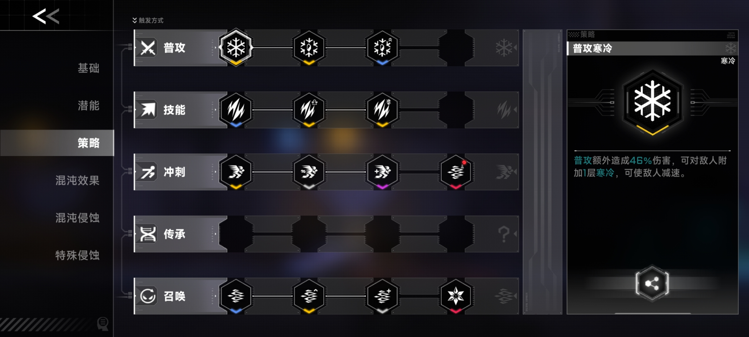 举个例子:影子冰刺,可以从“影子”和“冰刺”两方面加成,冲刺影子后续策略可以强化影子冰刺效果。