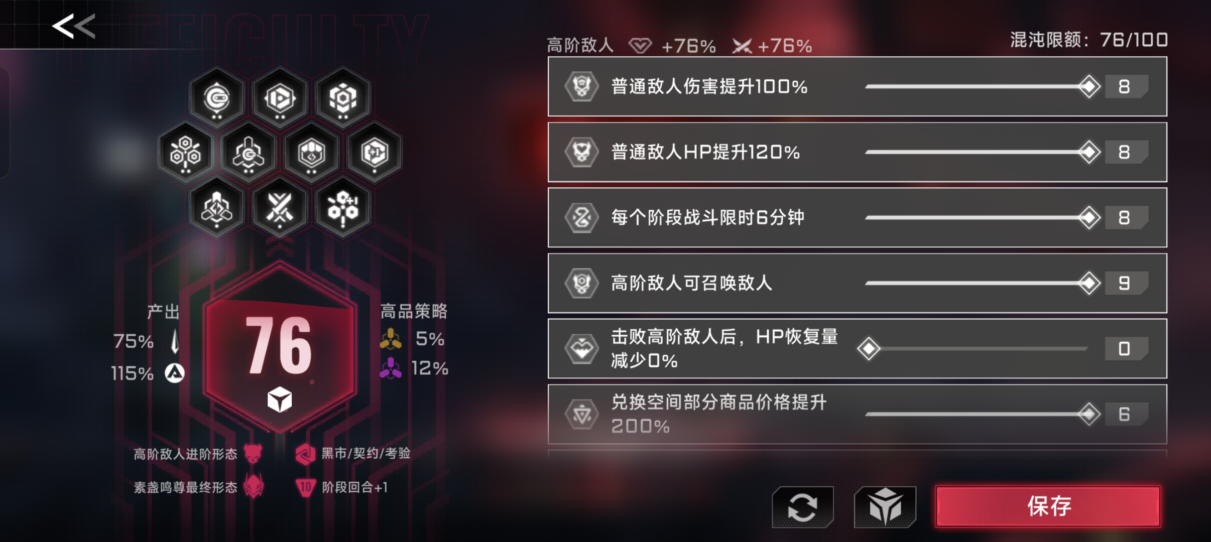混沌值到75后为此游戏的核心玩法,这么点对刚到75混沌的玩家容错率很高。
