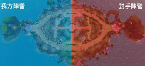 黎莫特竞技场分为上路、下路和中间区域,是一张轴对称的镜像地图——无论在哪一方,上路和下路都是固定的,地图左右两方的资源也是完全一致的。这个设定和王者峡谷的中心对称有一些区别。
