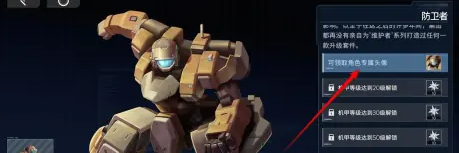 4、选择机甲后,点击左侧的可领取角色专属头像功能