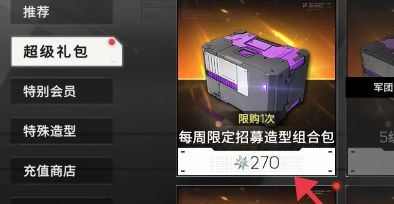 答:在超级礼包页面,消耗270货币购买即可