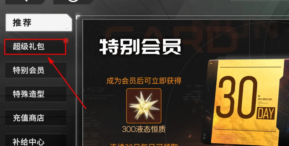 2、接着在商船页面,找到并点击左侧的超级礼包功能