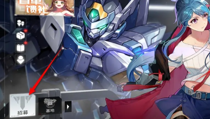 1、进入游戏后在首页面,点击招募或招募活动图标(如下图所示)