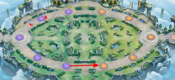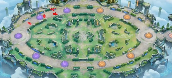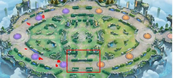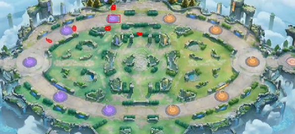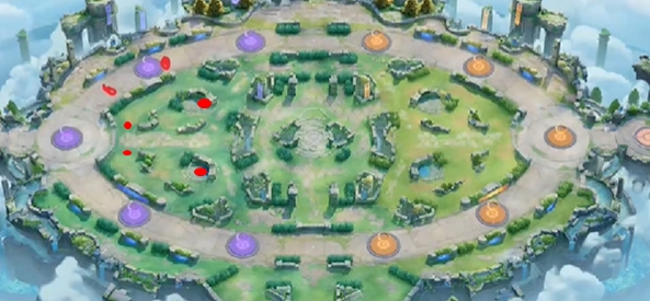 1、图中红色点位置有野怪,开局需要先将4只野怪击杀。