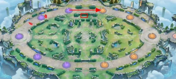 3、或者让队友站在图中方框处,将野怪抢了,然后去箭头处投分。