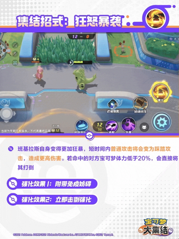 班基拉斯自身变得更加狂暴,短时间内普通攻击将会变为踩踏攻击,造成更高伤害。若命中的对方宝可梦体力低于20%,会直接将其打倒。