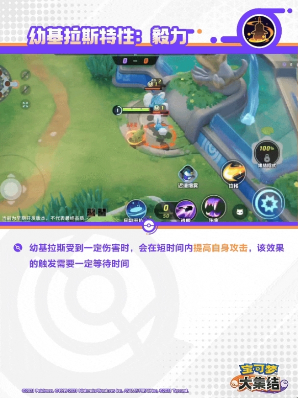 幼基拉斯受到一定伤害时,会在短时间内提高自身攻击,该效果的触发需要一定等待时间