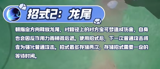 朝指定方向释放龙尾,对路径上的对方宝可梦造成伤害,自身也会因应作用力而稍微后退。