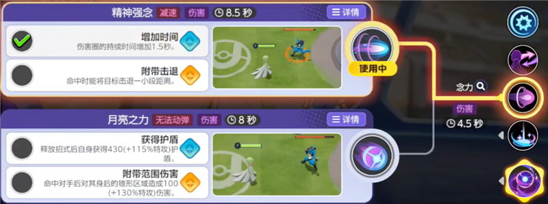 精神冲击是以沙奈朵本身为参照物,在技能范围内选择区域,进行连续三次范围伤害,