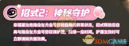 幸福蛋治愈指定友方宝可梦和自身的异常状态,招式释放后自身与指定友方宝可梦获得护盾,持续一定时间。