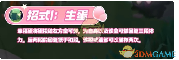 幸福蛋将蛋投给友方宝可梦,为自身以及该宝可梦回变三段体力。