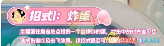 幸福蛋往指定地点投掷一个会爆炸的蛋,对击中的对方宝可梦造成伤害以及击飞效果。