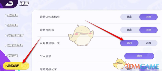 答:前往设置页面找到隐私设置,找到友好度显示,滑动开关进行设置即可