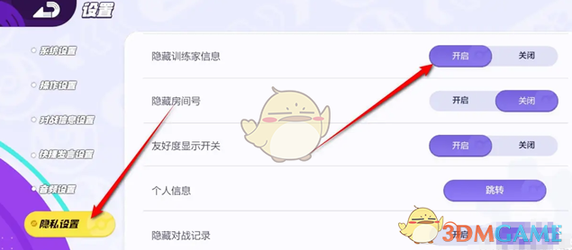 答:设置-隐私设置-将隐藏训练家信息功能设置开启即可