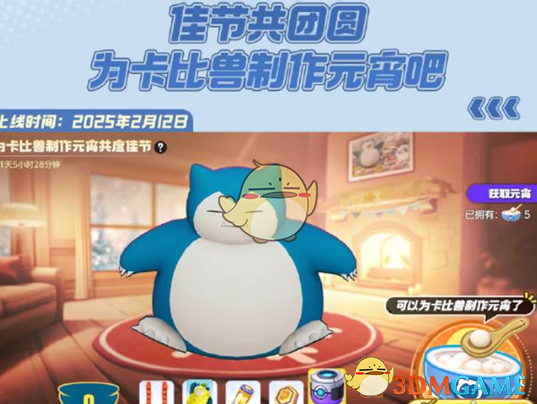1、训练家可通过完成活动任务收集元宵原料,为卡比兽制作元宵,增加卡比兽的饱腹值。