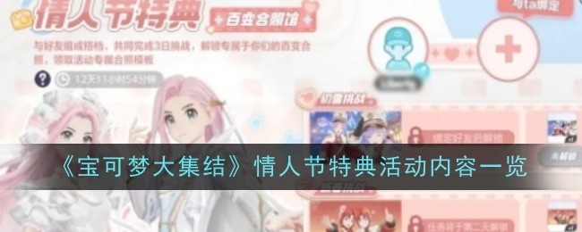 情人节特典活动是指在情人节期间,各种游戏、商家和品牌推出的特别活动,旨在为玩家和消费者提供独特的体验和奖励。在来临的情人节,玩家只要登录宝可梦大集结,完成相对应的任务,就能解锁情人节特典活动。