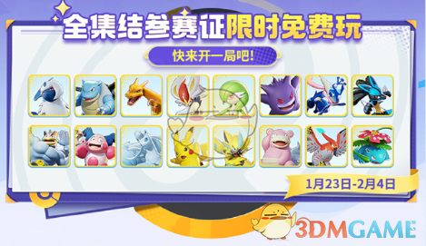 1月23日-2月4日,众多宝可梦参赛证限时免费体验!