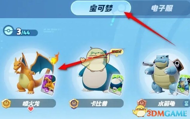 2、然后点击上方的宝可梦,选择需要切换皮肤的宝可梦前往;