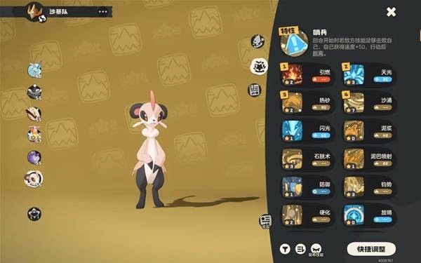 针对不同对手的策略:遇到天鹅时,独角兽可无脑 “阻断”,除非对方有导电技能。面对喇叭鱼,“阻断” 打残后要防备对方轮换。对阵黑猫,可先用 “阻断” 试探,若对方攻击猛烈则及时轮换。遇到千棘壳,第一发 “阻断”,第二发可尝试打状态,对方大概率会使用 “泡影”。此外,沙暴队要尽量避免与海豹船长、迷迷箱怪等天敌正面交锋,遇到时可依靠芋香巨角蛛周旋,巨噬针鼹提前站场也可用 “地刺” 牵制迷迷箱怪。
