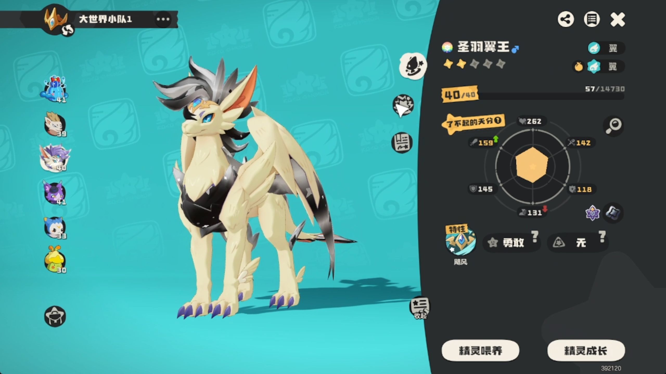 基础信息:编号 1400,身高 4.4m,体重 44.6kg。它爱好保护同伴,种族值总和为 755,其中精力 120、物攻 115、物防 120、魔攻 130、魔防 130、速度 140。
