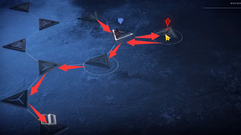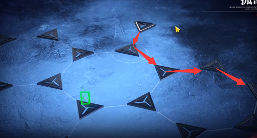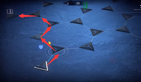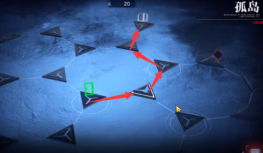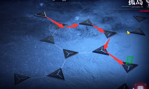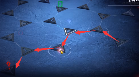 5、然后向左上方向移动去往白色图标,路线如图所示。