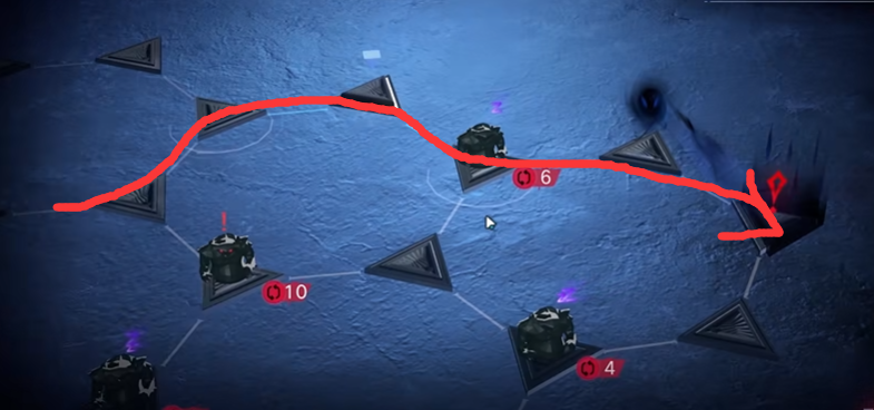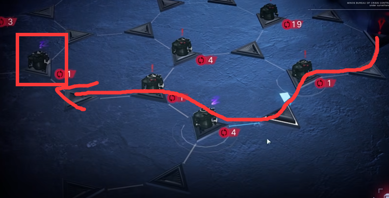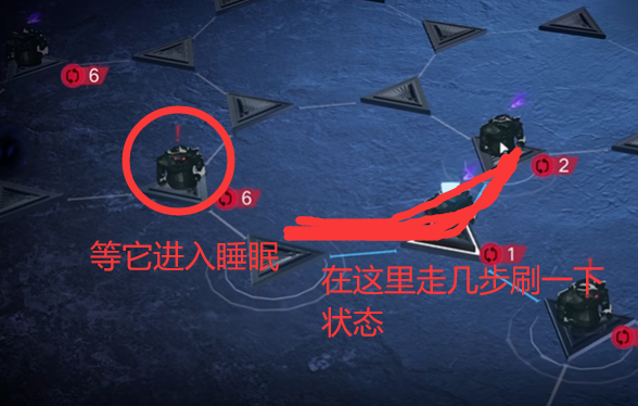 然后先去左边的叹号,沿着路线走,过来红色框框的黑影可能是警戒状态,在旁边绕一下,等它进入睡眠状态后过去踩红叹号救出澈。