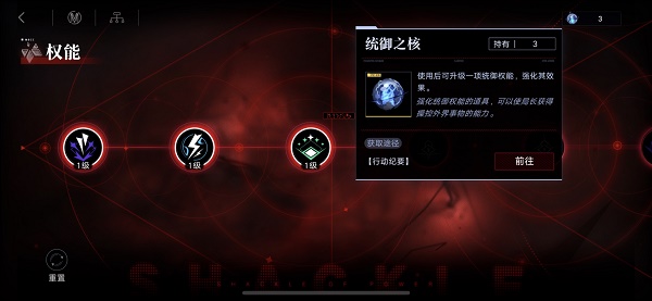 1、完成【行动纪要】可获得【统御之核】进行权能升级。游戏内目前共有7种【统御权能】,玩家推进主线可依次解锁。
